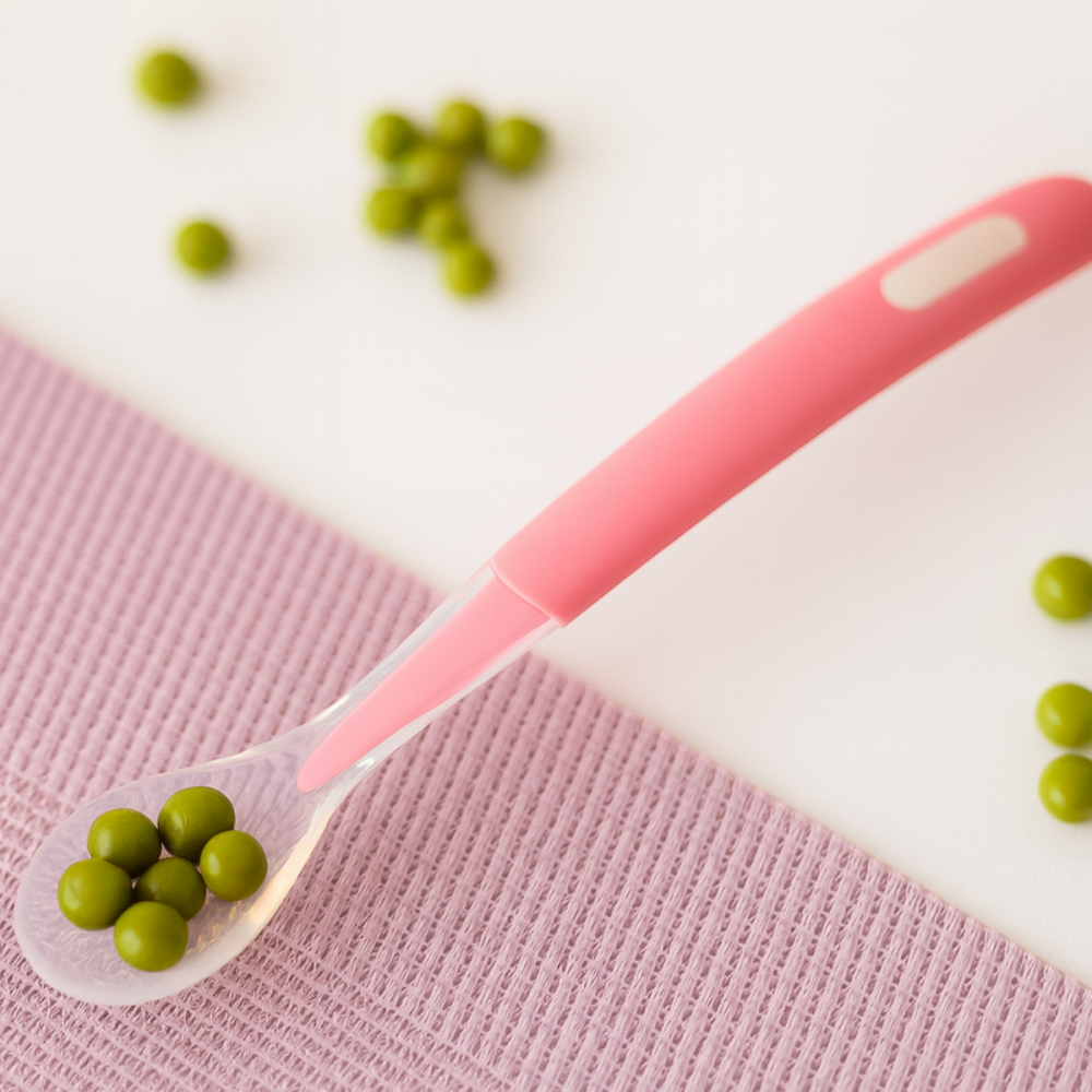 Nuestra cuchara STEP 1 rosa es la herramienta ideal en el primer contacto de tu bebé con la comida.