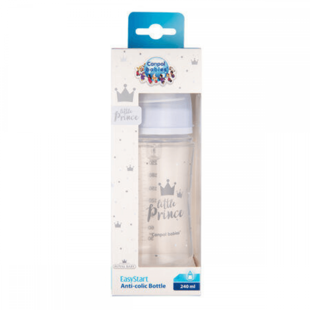 Biberón anticólicos con capacidad de 240 ml de la colección Royal Baby Azul de la marca Canpol babies. ¡Personalizable!