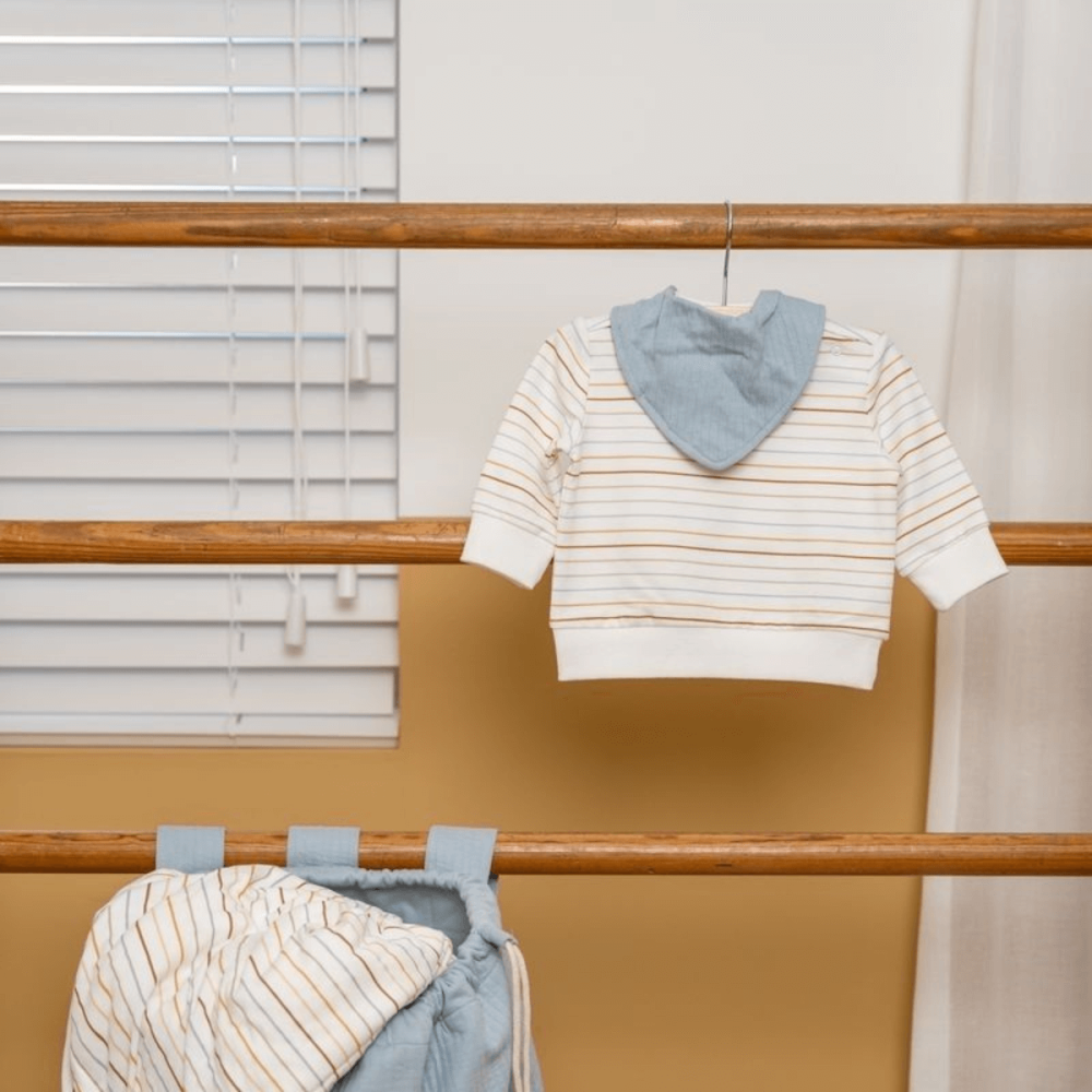 Bandana azul de la colección Bib de la marca Little Dutch. Protege la ropita de tu bebé con esta elegante secababitas. Tiene un color liso para que combine más fácil con su ropita.