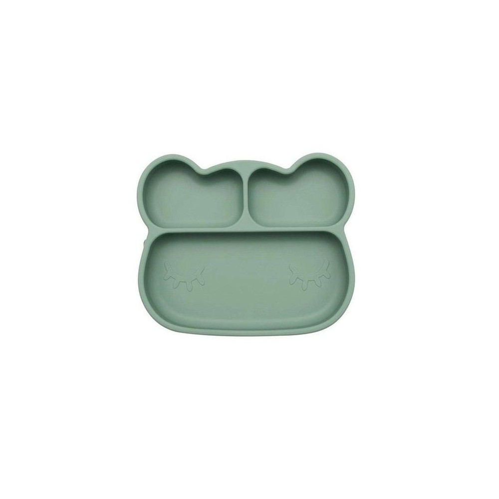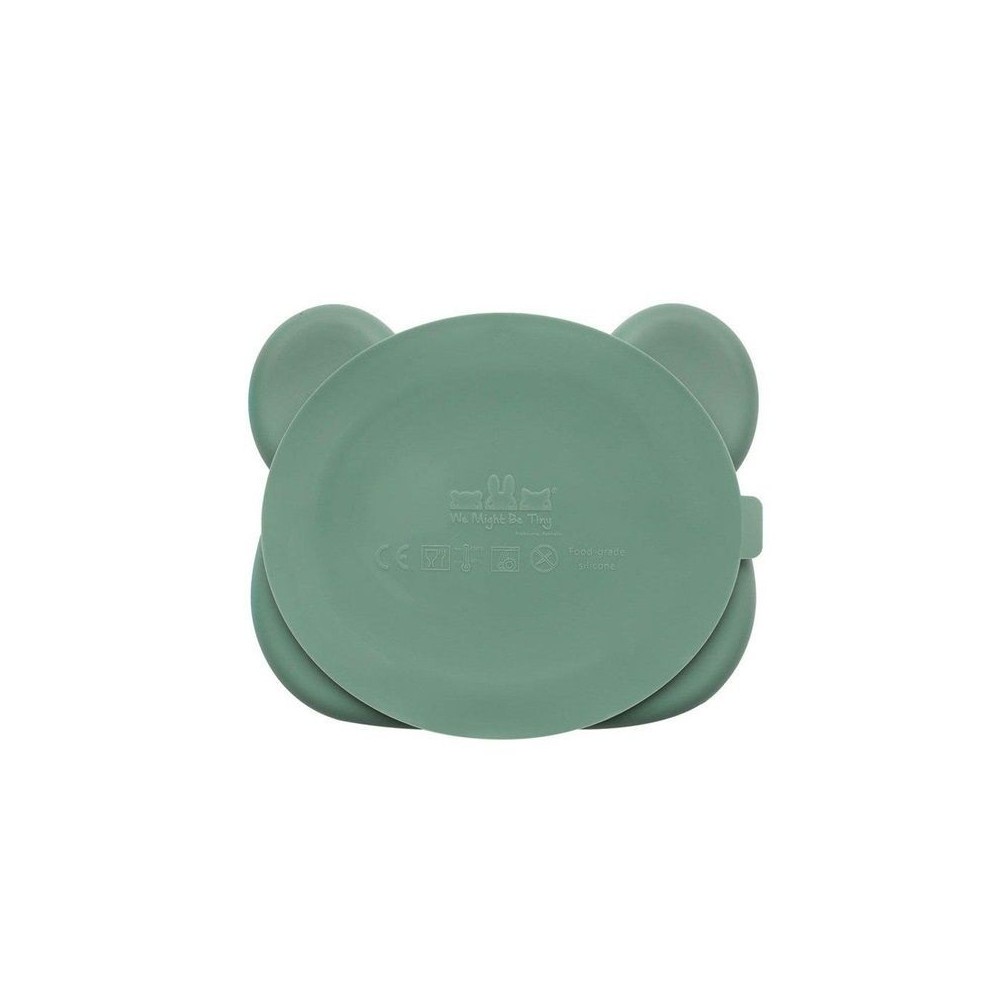 Plato infantil de silicona con ventosa y forma de oso en color sage para niñas y niños de la marca We Might Be Tiny.