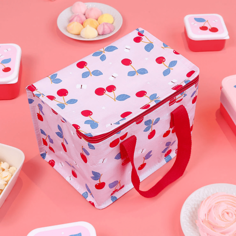 Lleva la frescura a todas partes con esta preciosa bolsa térmica rosa con cerezas de A Little Lovely Company. Práctica, ecológica y personalizable: todo lo que necesitas en una sola bolsa.