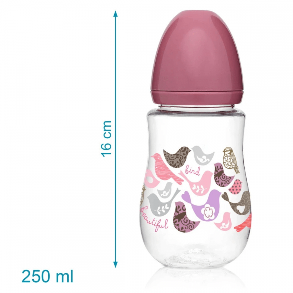 - Biberón 250ml. De boca ancha, para ofrecer mayor superficie de apoyo para los labios del bebé, así como facilidad de llenado o limpieza, y sus tetinas son universales (para uso en cualquier biberón estándar de boca ancha). Están fabricadas en suave silicona de alta calidad y cuentan con sistema de ventilación anticólico, que permite conseguir un flujo constante de leche, compensando la salida de líquido con la entrada de aire, reduciendo el riesgo de cólicos. Encontrarás tetinas 3 posiciones: el papá o la mamá podrá regular el flujo del líquido simplemente girando el biberón y orientando el número correspondiente hacia la nariz del bebé, siendo el 1 el flujo más lento, y el 3 el adecuado para líquidos más densos.