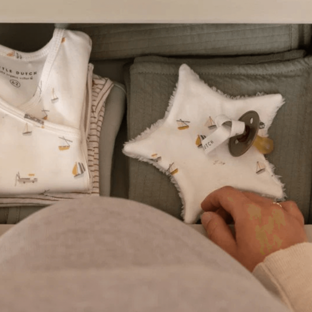 Chupetero Sailors Bay de tela suave de la nueva colección de la marca Little Dutch en color blanco.