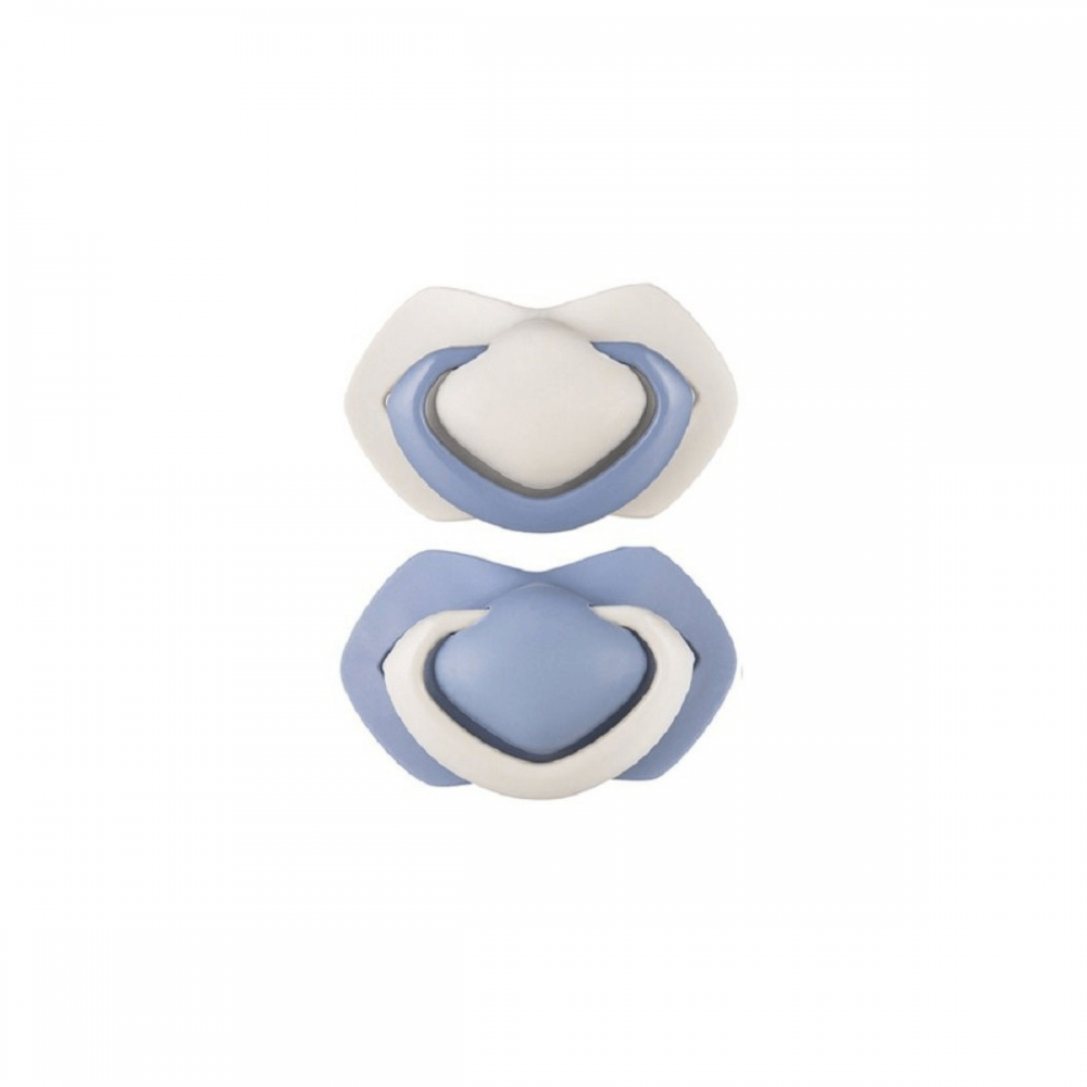 La forma plana especialmente perfilada del protector con pequeños orificios garantiza un flujo de aire adecuado y minimiza el riesgo de irritación de la piel. Están fabricados con silicona de la más alta calidad, inodoro e insípido y equipados con un agarre cómodo. Los chupetes de tacto ligero han sido creados para garantizar el máximo confort a los más pequeños. Su caucho de silicona excepcionalmente suave requiere menos esfuerzo durante la succión, y el escudo ligero y perfilado no sobrecarga la oclusión del niño y garantiza una respiración fácil.