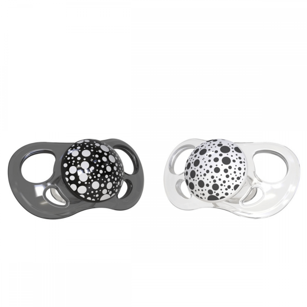 ¡Tranquiliza a tu bebé con los elegantes y seguros chupetes blanco y negro de Twistshake!