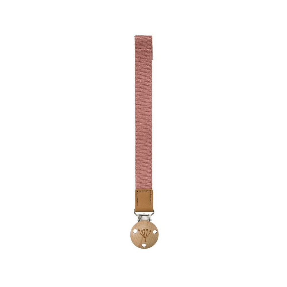 Sujeta chupete de la marca Fresk en color rosa oscuro con velcro en su extremo para colocar el chupete. Ideal para chupetes con anilla. Su diseño sencillo y su bonito color quedará genial con su ropita. La pinza de madera tiene un bonito dibujo de diente de león.