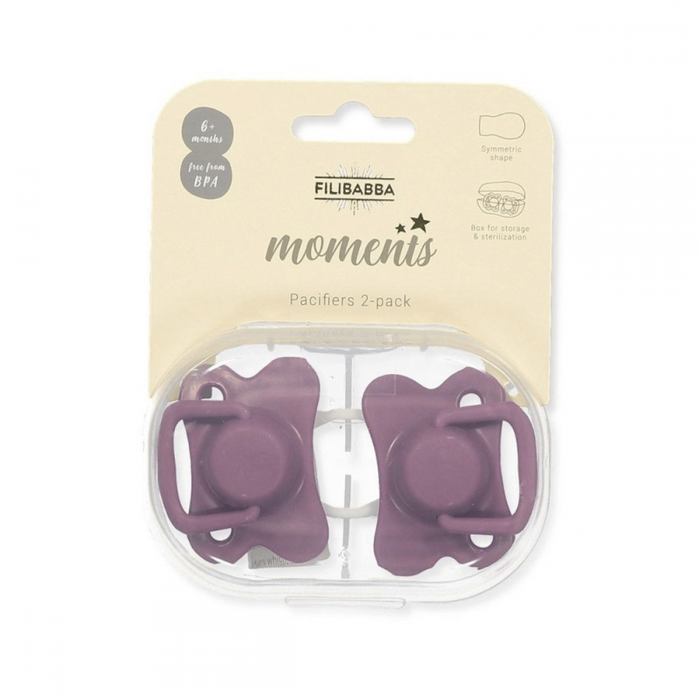 Pack 2 Chupetes Filibabba Moments para más de +6 meses en color granate y con tetina fisiológica de silicona.