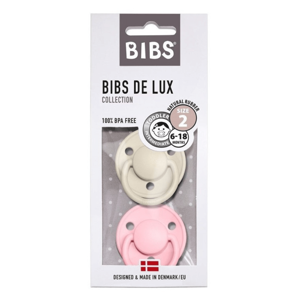 Pack de 2 Chupetes de la marca Bibs de la colección De Lux Ivory / Baby Pink y tetina de Caucho Natural.