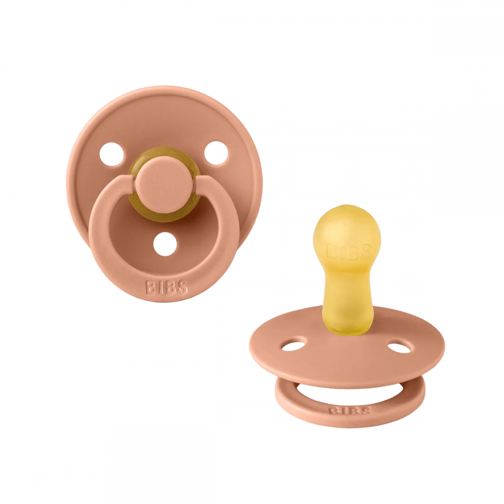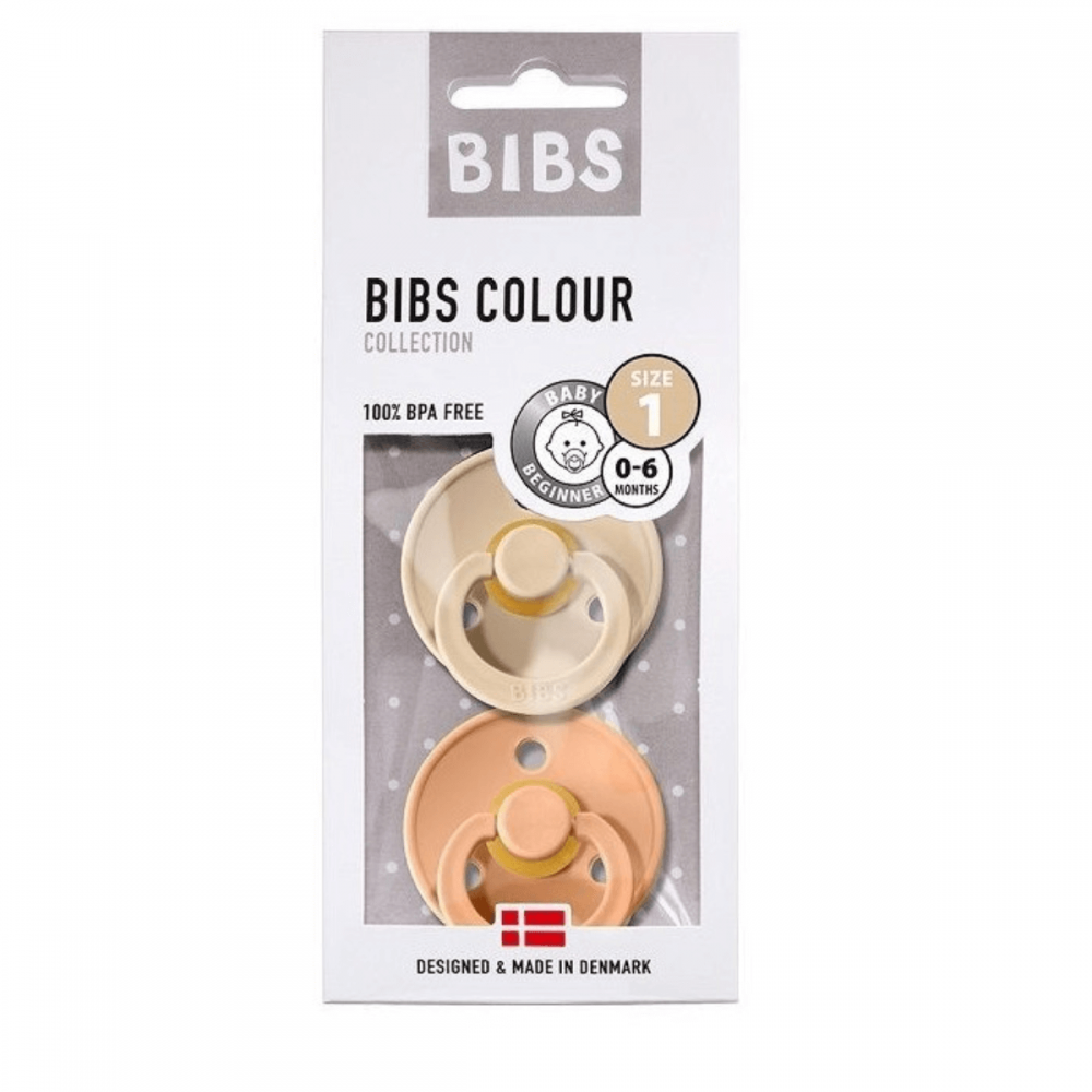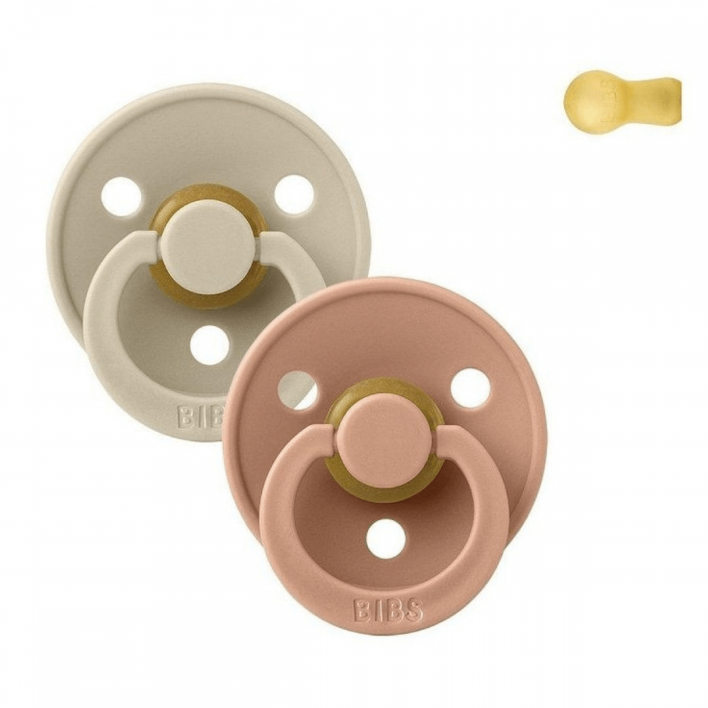 Pack de 2 Chupetes de la marca Bibs de la colección Colour. Colores; Vainilla y Peach y con tetina de Caucho Natural.