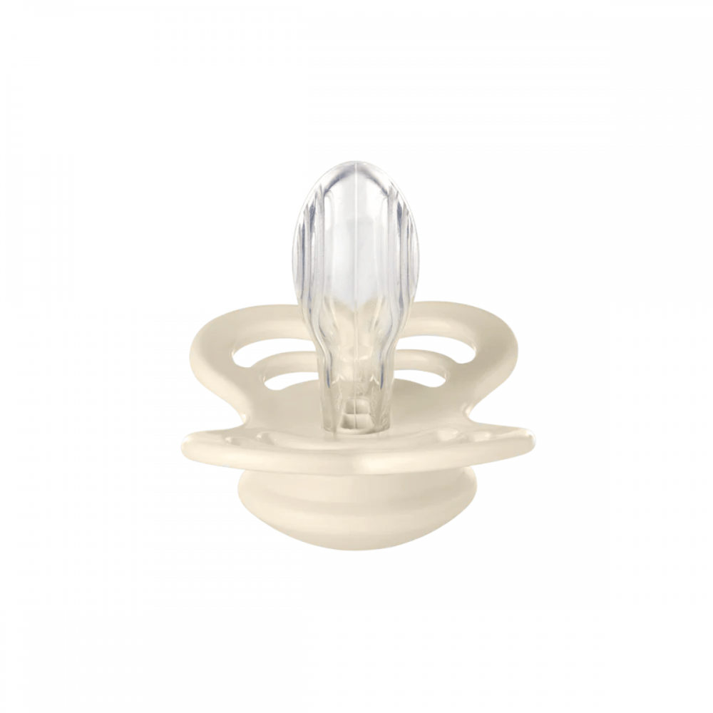 BIBS Supreme Ivory / Baby Pink es un chupete de ventila, lo que significa que bebé aprieta el aire fuera del chupete mientras es usado.