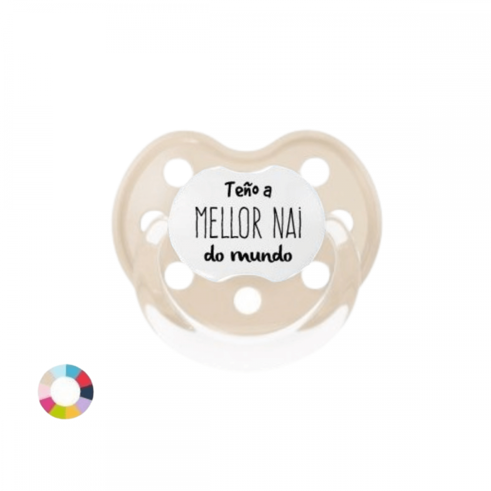 Chupete en gallego mamá, Classic de la marca Tutete con el eslogan: Teño a Mellor Nai do Mundo.