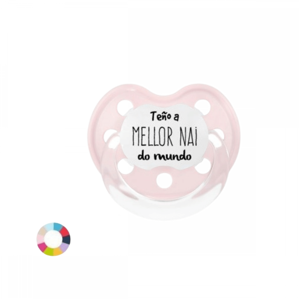 Chupete en gallego mamá, Classic de la marca Tutete con el eslogan: Teño a Mellor Nai do Mundo.