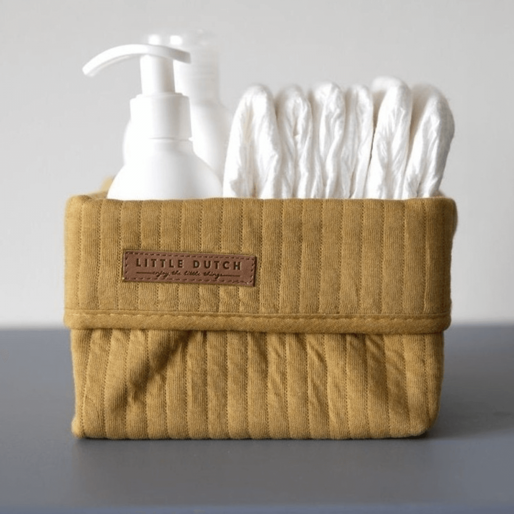 Cesta de almacenaje bebé Personalizable pequeña en color Mostaza de la marca Little Dutch. Decora su habitación o zona de aseo con esta ideal cesta.