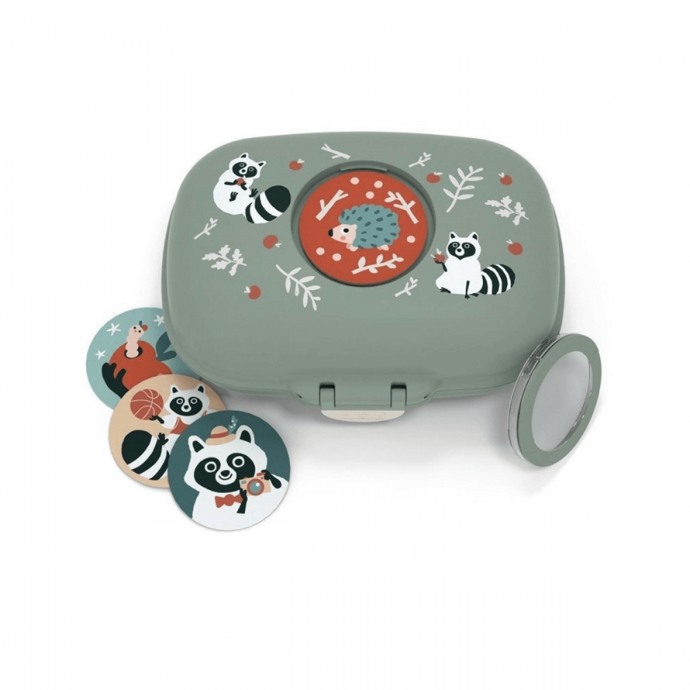 Esta original y divertida fiambrera, incluye ingeniosas tapitas de cartón intercambiable y personalizable que permite introducir el nombre de su pequeño propietario en la parte superior de la tapa. ¡Se acabaron los intercambios desafortunados de meriendas en el recreo!