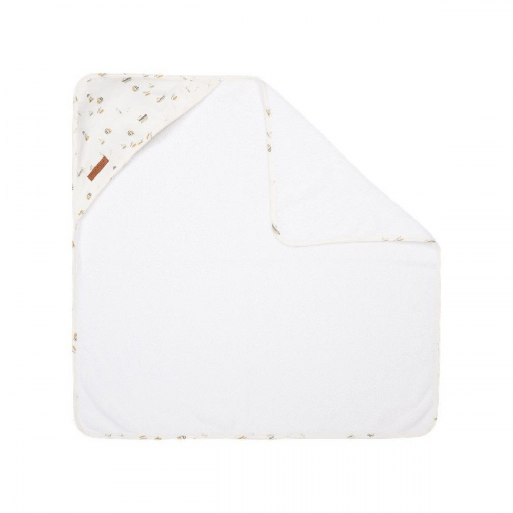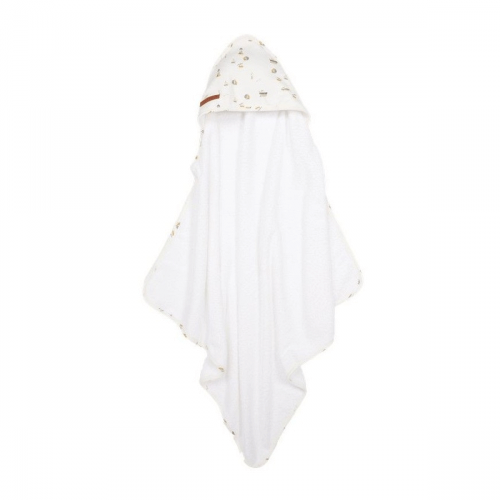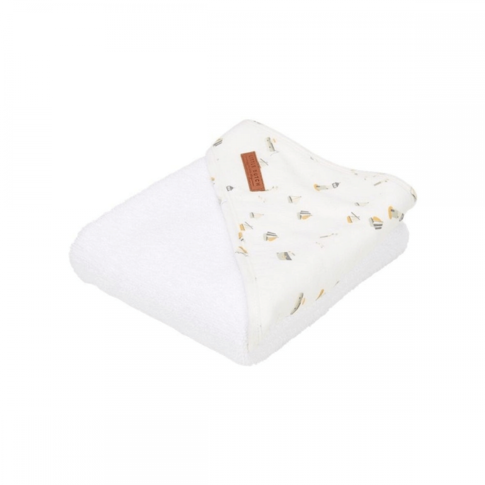 Toalla Sailors Bay de la marca Little Dutch en color blanca. Su capucha es ideal para que no pase frío a la hora del baño. ¡Personalízala con su nombre!