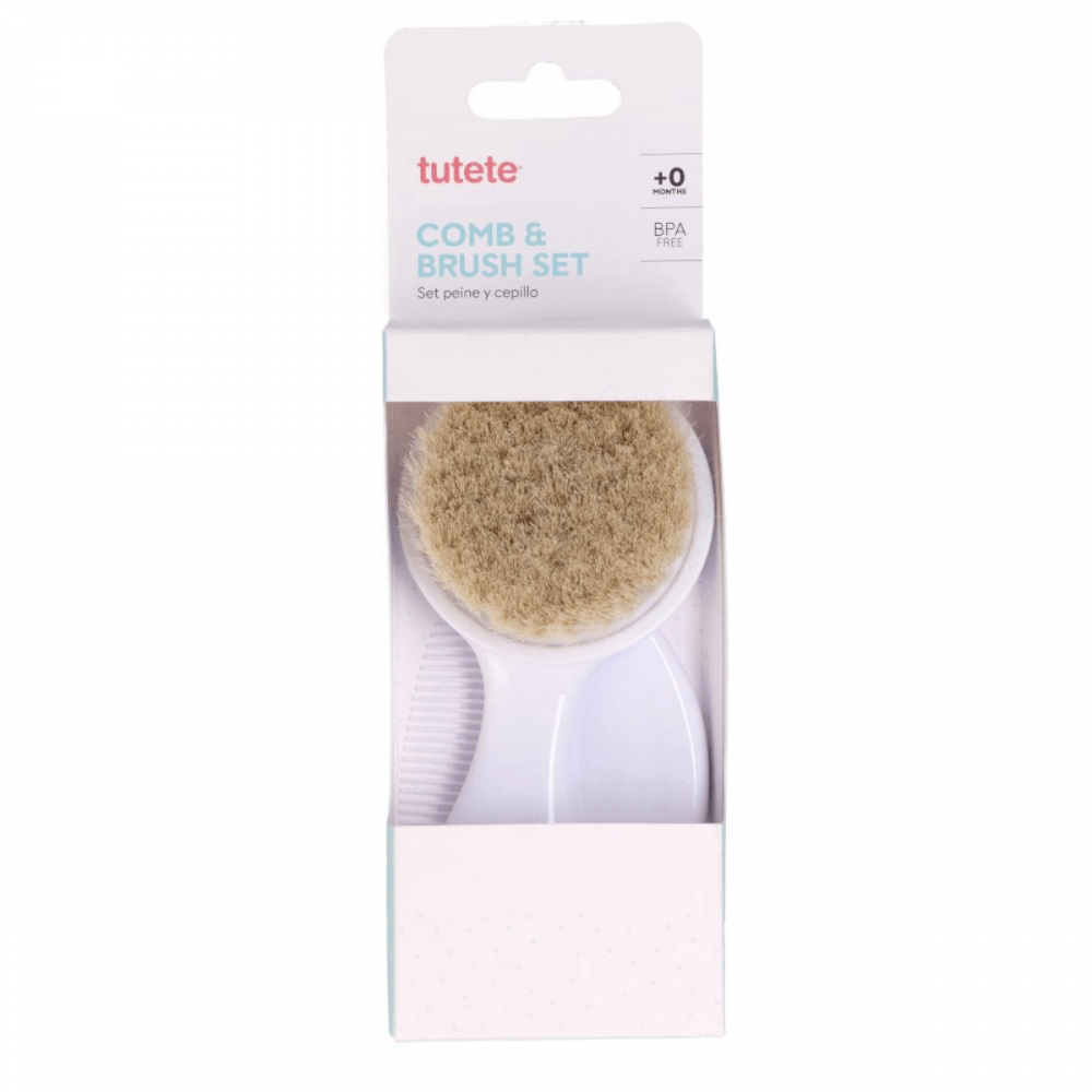 Set peine y cepillo bebé, de la marca Tutete en color blanco. Sets para la higiene y el aseo de tu bebé.