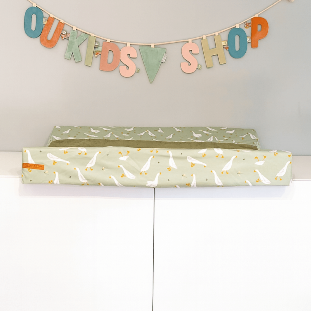 Funda para cambiador ocas de tela de la colección de Pequeñas Ocas en oliva de la marca Little Dutch.
