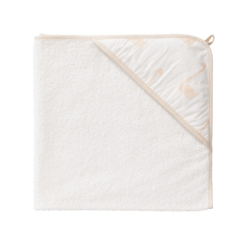 Toalla con capucha bebé para el baño de la colección Cisne de la marca Fresk. Descubre el resto de artículos de la colección en la web; mochila, estuche, vajilla, cubiertos y babero.