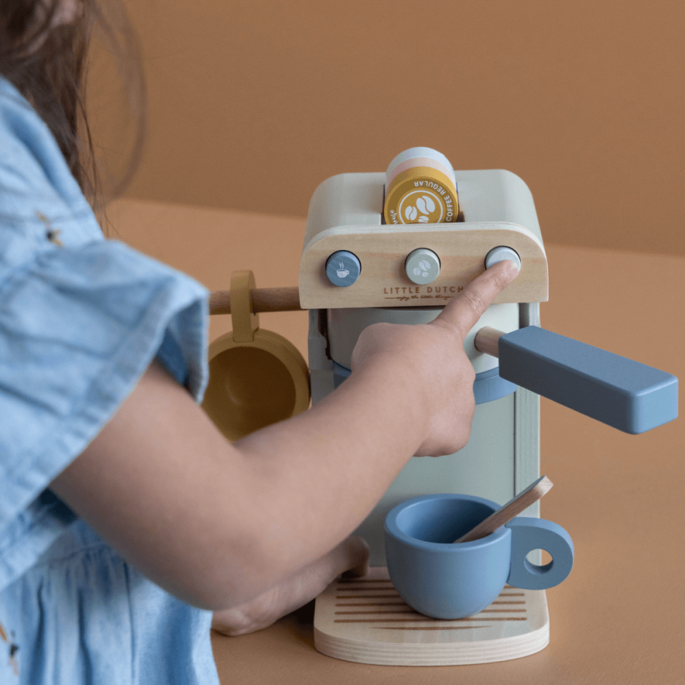 Set de cafetera nuevo color en madera con nuevos detalles de Little Dutch. Prepara un rico café con este juego simbólico.