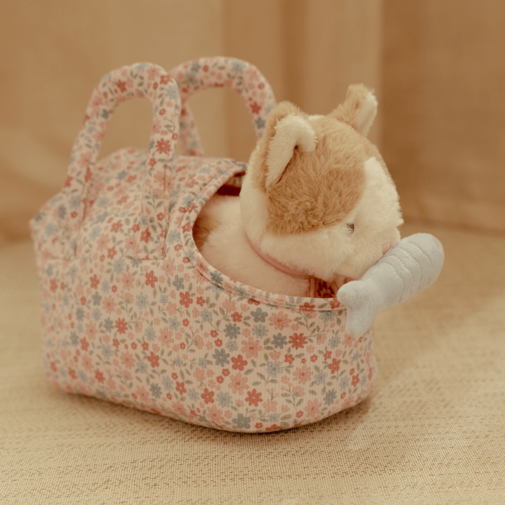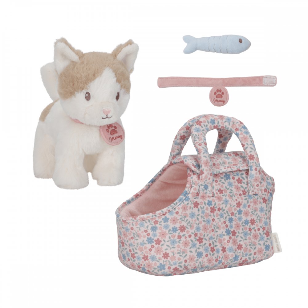 El adorable gatito de peluche Marley de Little Dutch viene con bolso floral y juguete de pez. Compañero suave y perfecto desde los primeros juegos.