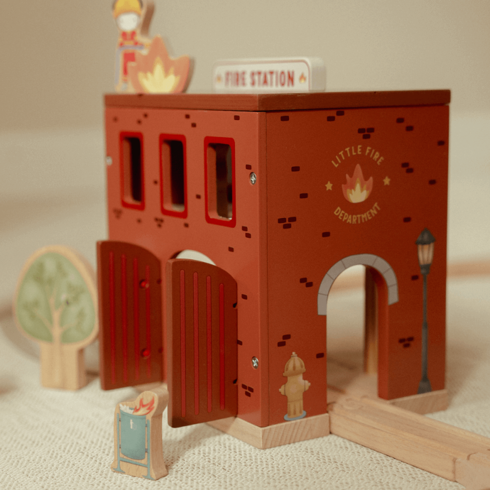 Juguete estación de bomberos en madera de Little Dutch. Un juego para pequeños y pequeñas héroes
