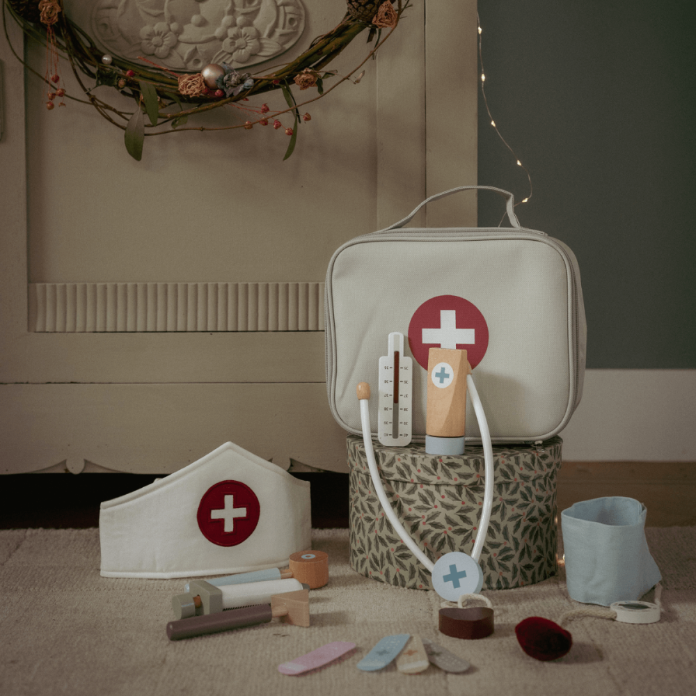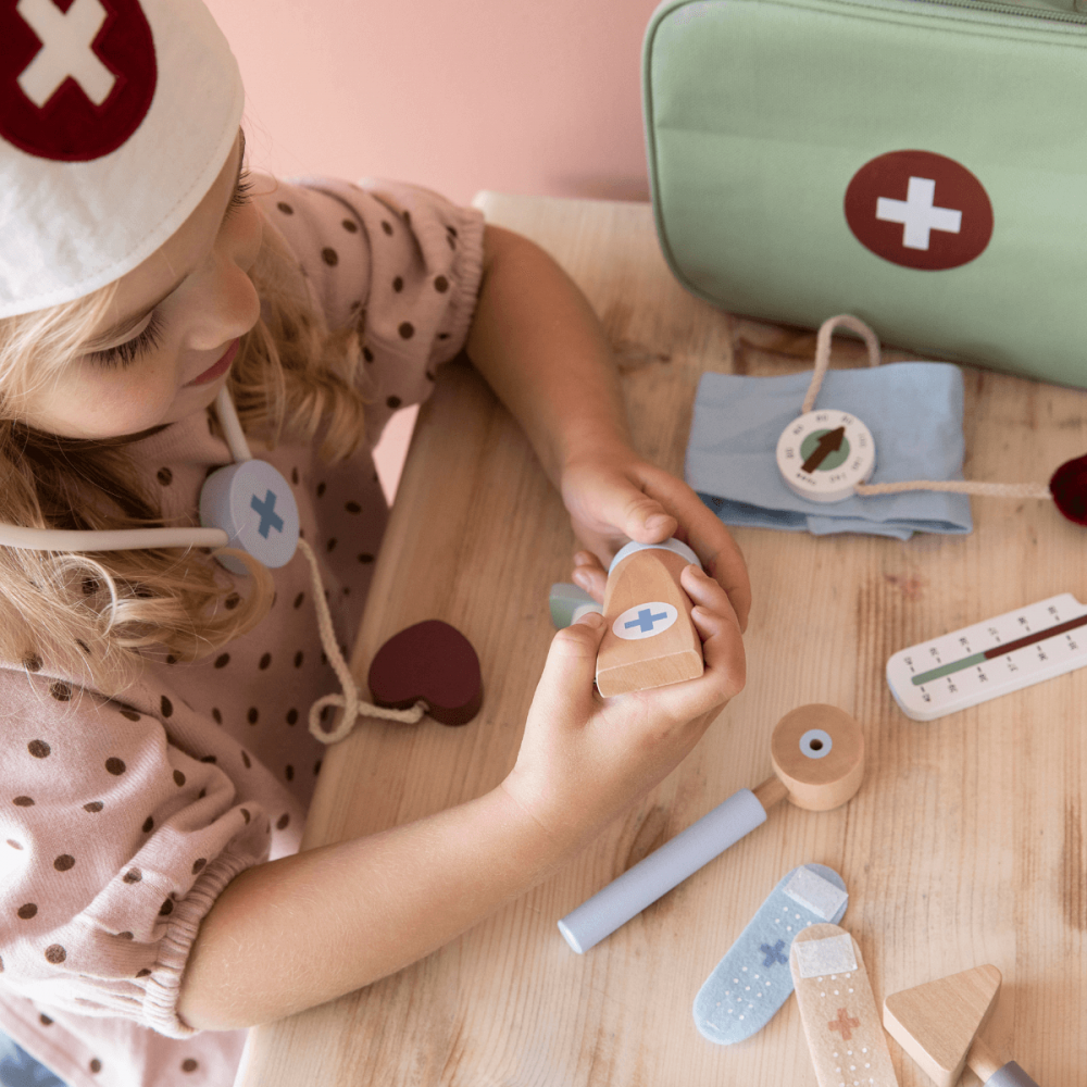 Maletín de doctor o doctora de la marca Little Dutch con muchos accesorios para pasar horas divirtiéndose jugando a un juego de imitación para niñas y niños.