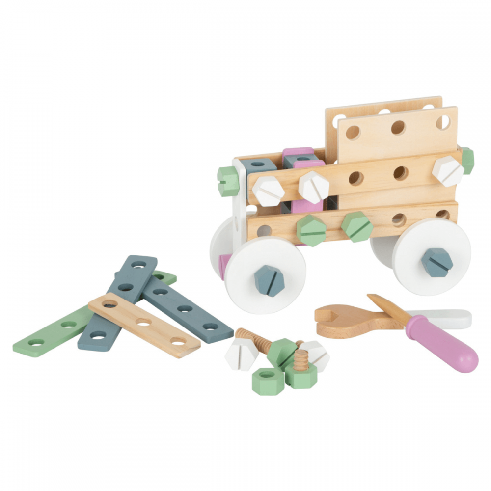 Con tiras perforadas, tuercas roscadas, tornillos, tornillos madre, discos de madera y placas de construcción, los pequeños ingenieros pueden empezar a trabajar de inmediato. Con la ayuda de una llave inglesa y un destornillador, todas las partes se ensamblarán a la perfección. Ya sea que estés fabricando un tractor, una locomotora o una grúa, no hay límite para tu creatividad. ¡Con modelos construidos con tus propias manos puedes jugar y divertirte!