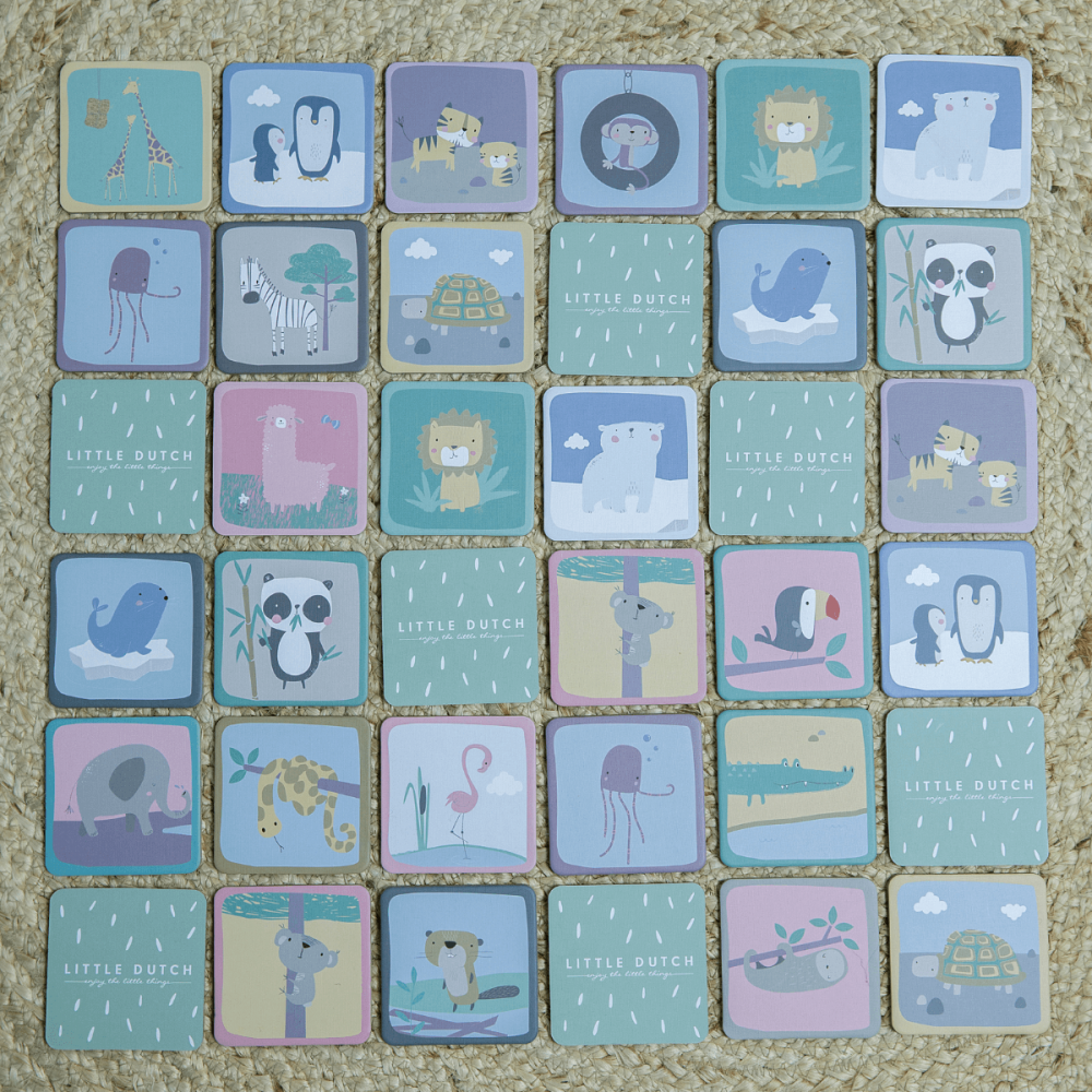 Juego de memoria animales de la marca Little Dutch. Divertido juego para ejercitar la memoria. Encuentra las parejas de entre estos simpáticos animales.