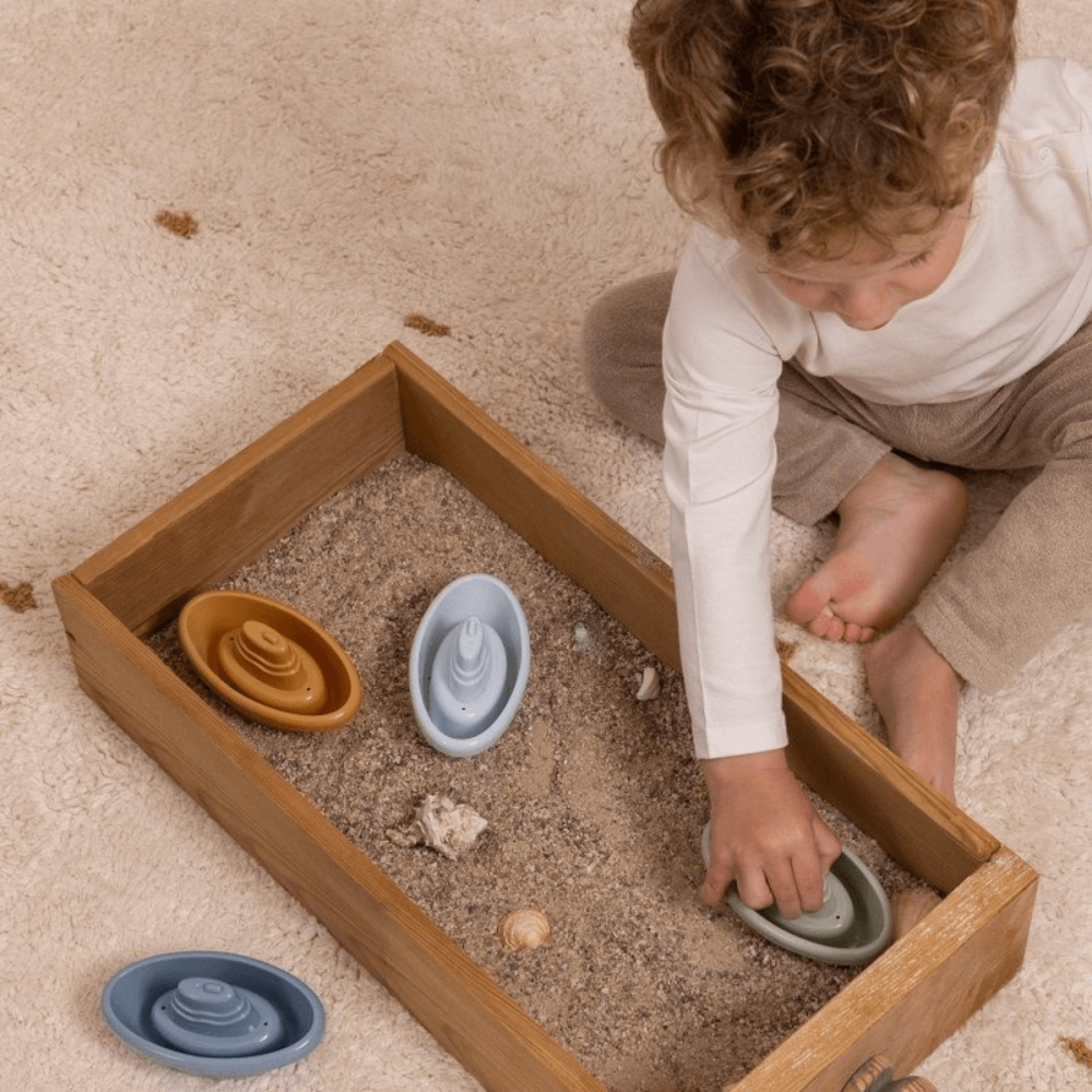 Deja que flote a través de la bañera y recógelos del agua justo antes de acostarse o apílalos en tierra firme. Estos pequeños botes despertarán la imaginación de tu bebé dentro y fuera del agua mientras zarpa felizmente en una nueva aventura en el océano.