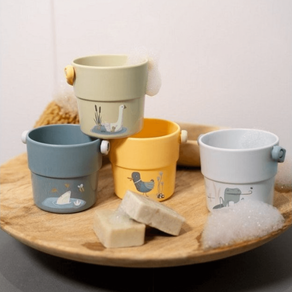Juego de baño cubos compuesto por 4 unidades de la colección Pequeñas Ocas de la marca Little Dutch para disfrutar de la hora de la ducha.