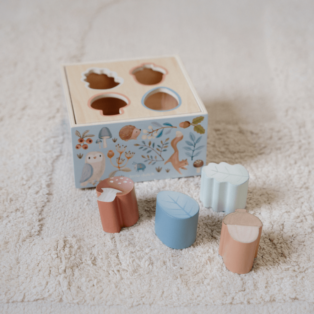 El encajable de madera azul de la colección Forest Friends de Little Dutch es un juguete educativo ideal para acompañar las primeras etapas del aprendizaje.