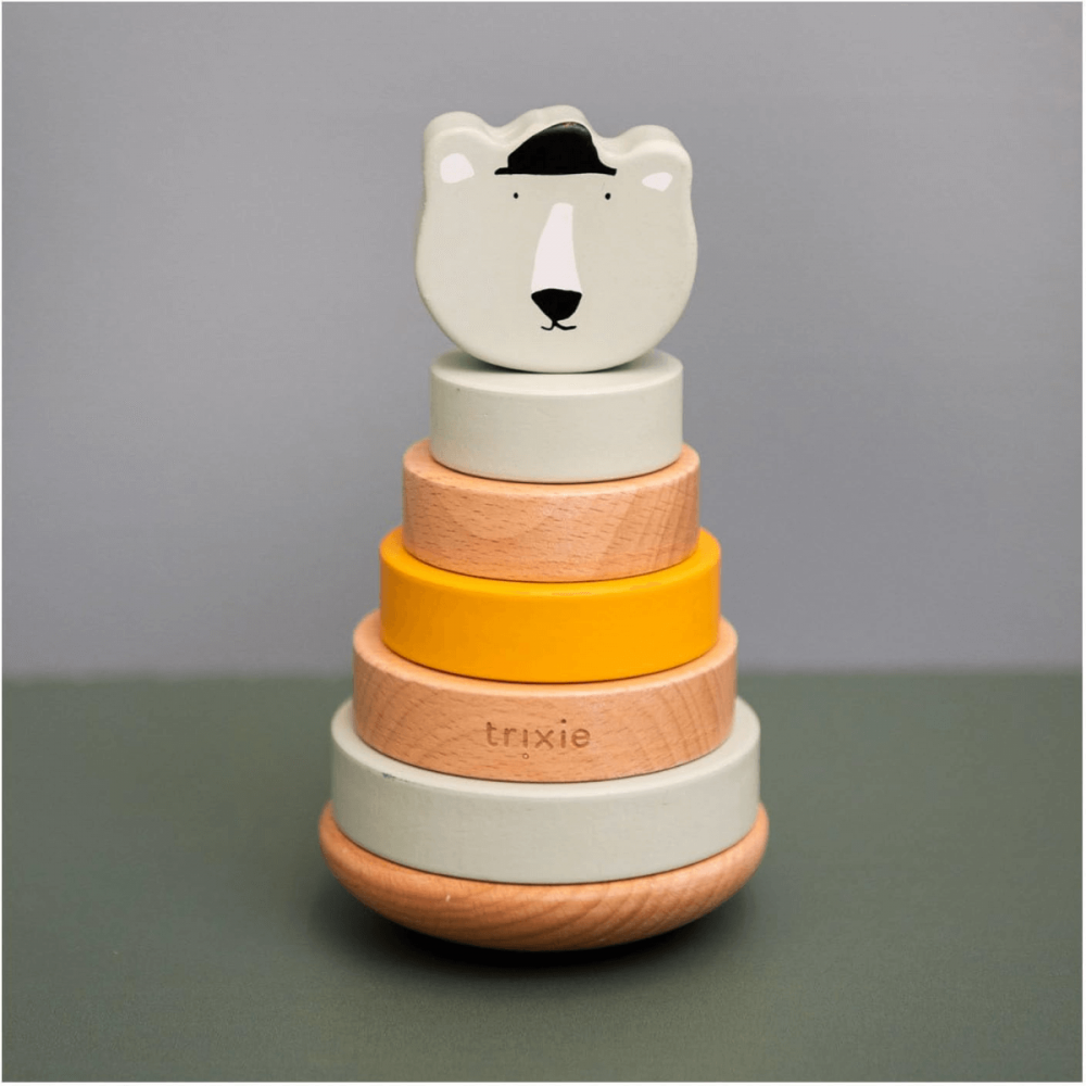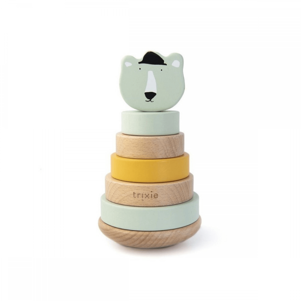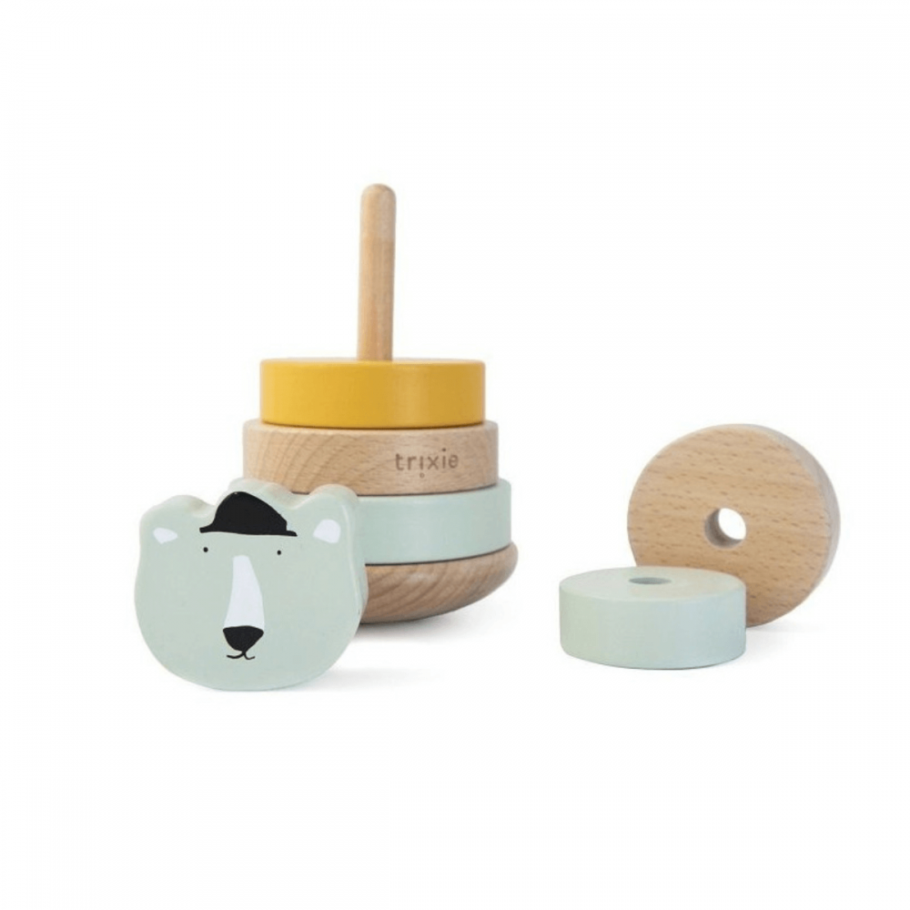¡Con su hermoso equilibrio entre madera y color, este clásico en la gama de juguetes de madera es absolutamente imprescindible! La torre apilable Trixie es del nuevo e inseparable amigo Mr. Polar Bear.
