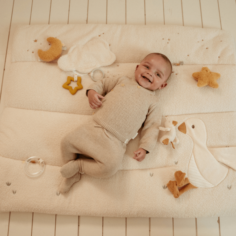 Manta de juego newborn de Little Dutch. Suave, acolchada y sensorial. Ideal desde el nacimiento. Tonos neutros y detalles dulces.