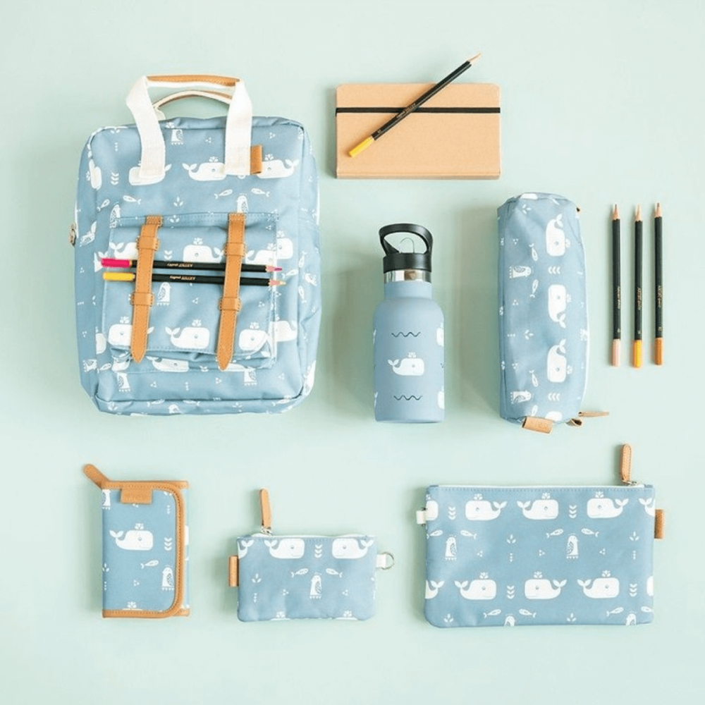 Estuche ballenas Fresk con cierre de cremallera para llevar al cole con los lápices y colores.