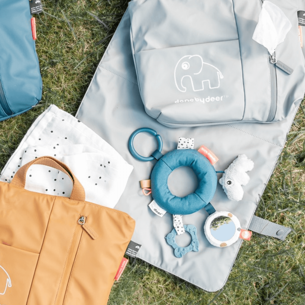 Anillo de actividades para bebé en color azul de la marca Done by Deer. ¡Ayúdalo a descubrir!