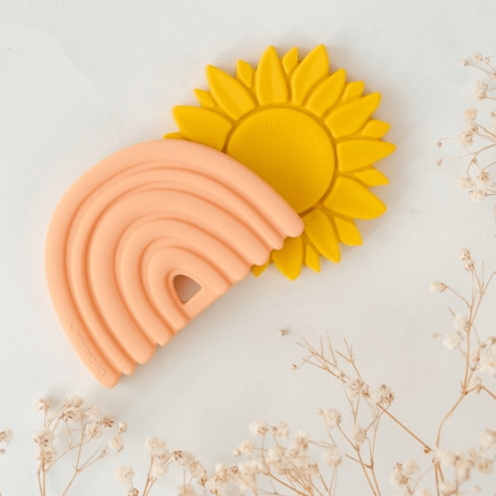 Este mordedor de silicona girasol lemon es original, flexible y fuerte. Es suave con las encías, perfecto para aliviar las molestias de la dentición. Un regalo ideal para bebé.