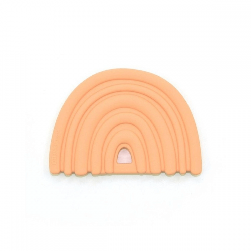 Mordedor de silicona peach de arcoíris de la marca OB Design. Es original, flexible y fuerte, además de suave con las encías.