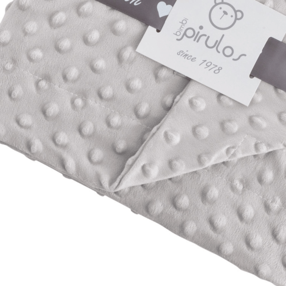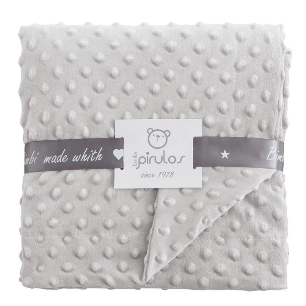 Manta para bebé de la colección Dots en color gris de la marca BimbiPirulos de Bimbidreams. Es una opción ideal para regalar a bebé recién nacido.