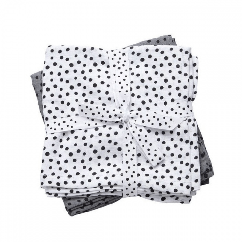 Pack de 2 Muselinas Happy Dots en color gris, de la marca Done by Dear. Ideales para un regalo.