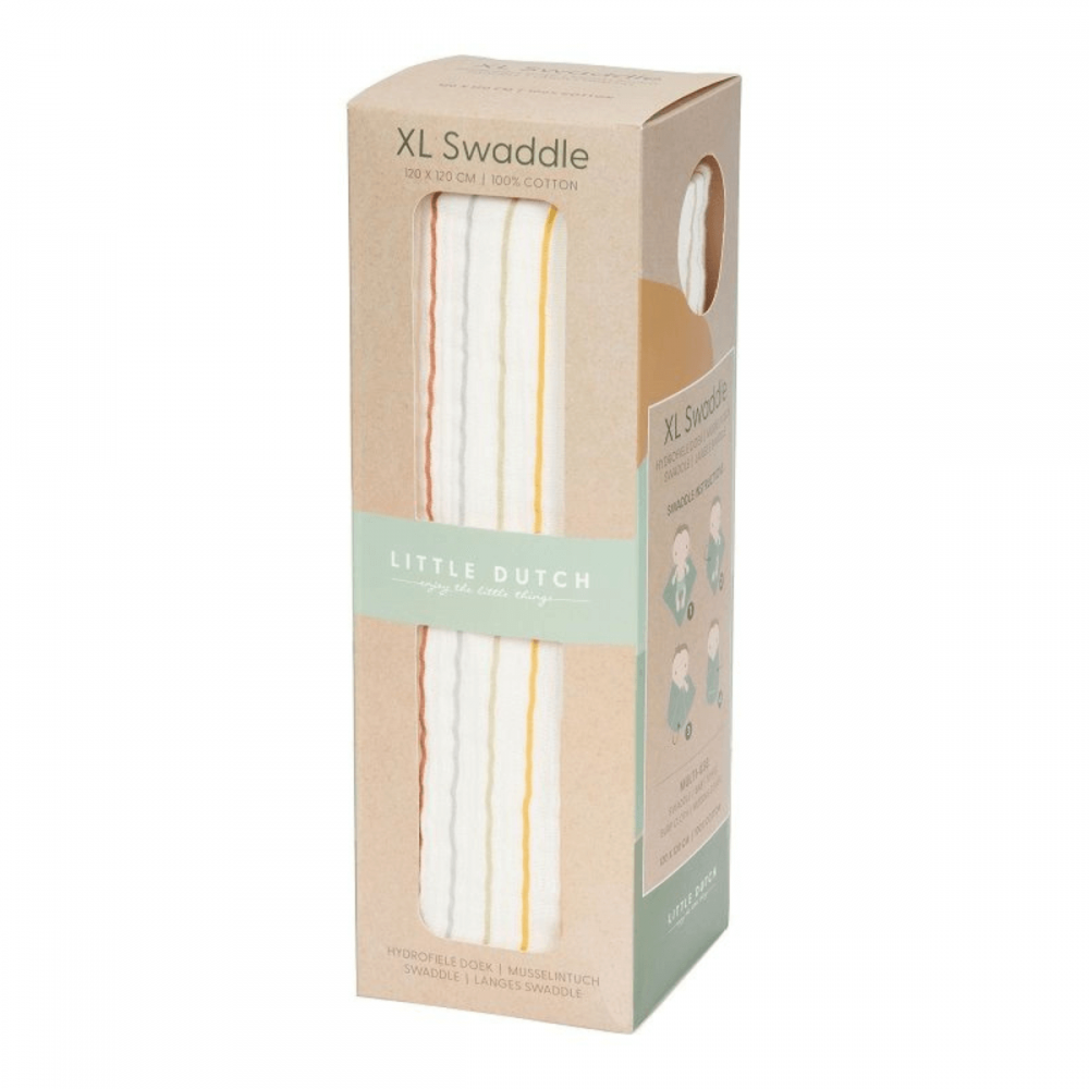 Muselina Vintage Sunny de la marca Little Dutch con unas medidas de 120 x 120 cm. Una muselina unisex con unas rallas de colores muy bonita