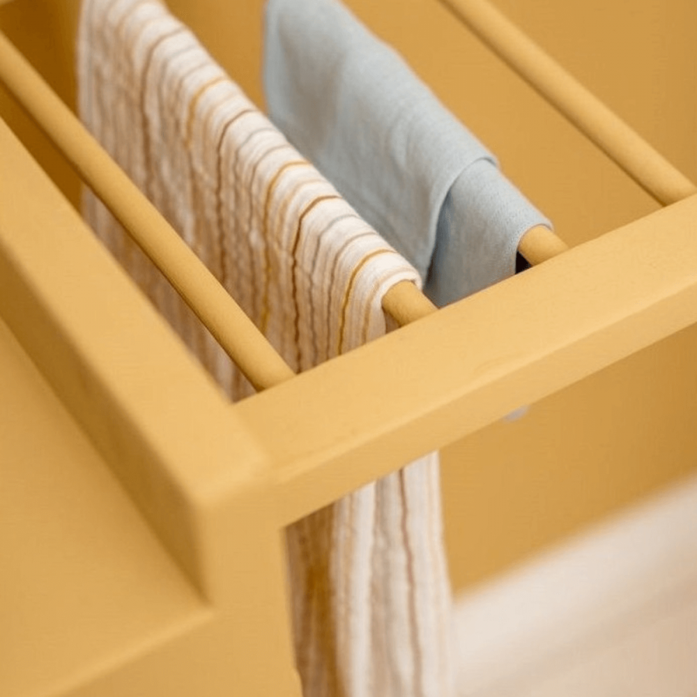 Sus juguetes de madera son el sello más distintivo de la firma: trenes, cocinitas, encajables, instrumentos musicales, juegos de equilibrio o pistas de coches, todos elaborados con materiales sostenibles y pinturas al agua seguras para los niños. Cada pieza está pensada para estimular la imaginación, la motricidad y el aprendizaje a través del juego libre.