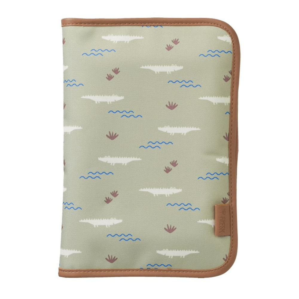 Bolsa con cambiador impermeable cocodrilo incluido de la marca Fresk. Puedes llevar guardado también toallitas y pañales. ¡Personalízalo con su nombre!