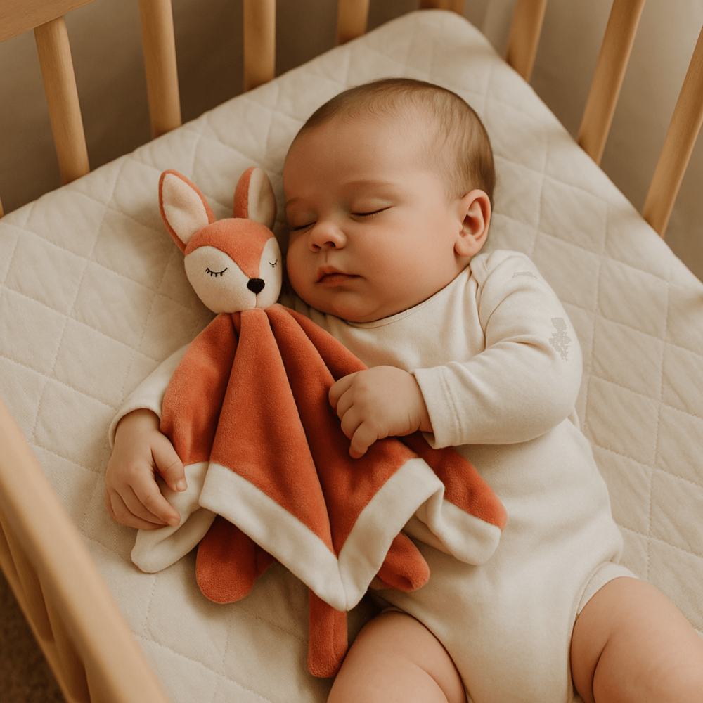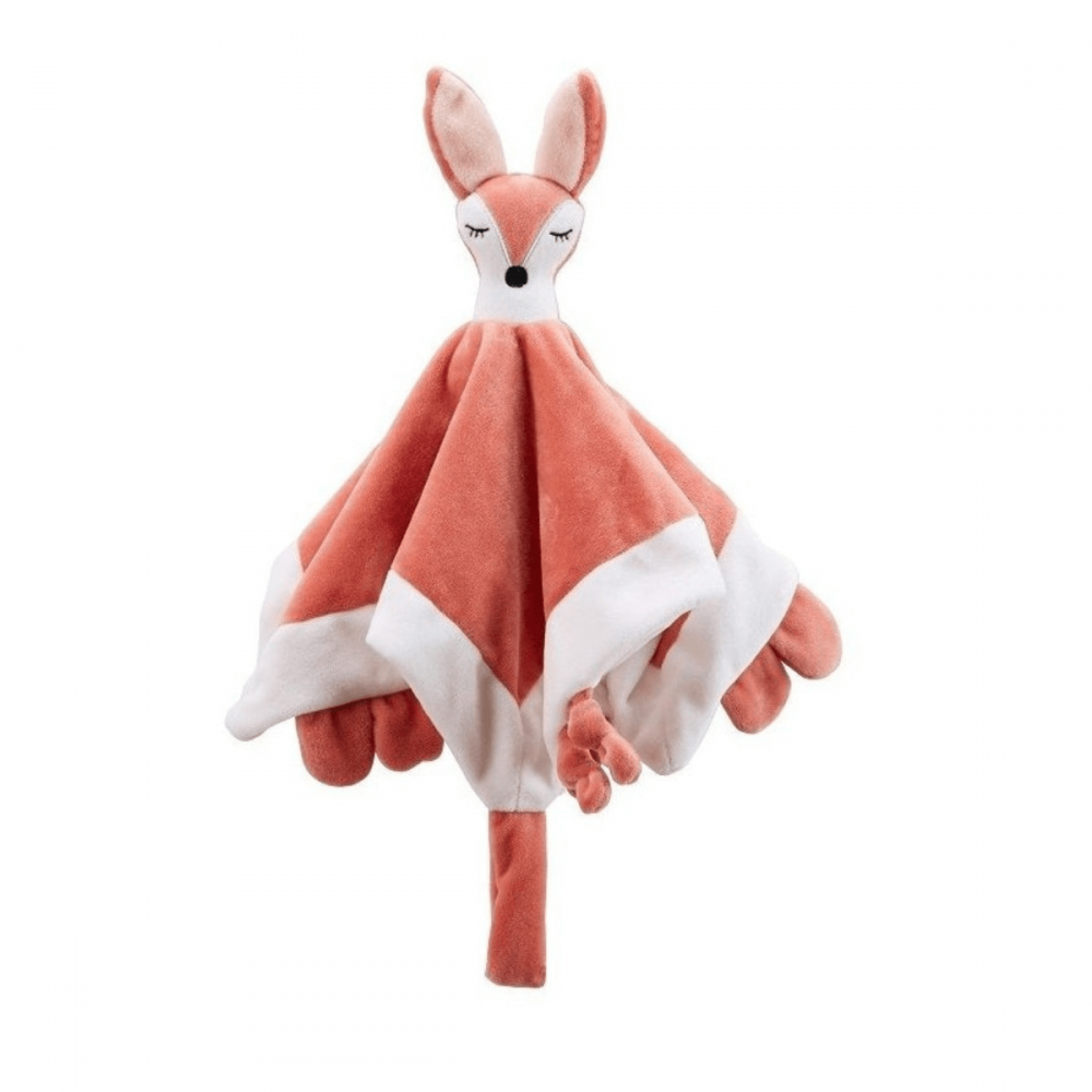 A tu bebé le encantará jugar con este doudou suave y de aterciopelada tela con múltiples detalles y un preciso muñeco en forma de zorro que velará el sueño del pequeño para que se sienta protegido y acompañado. Puedes encontrar en la web el sonajero de zorro a juego.