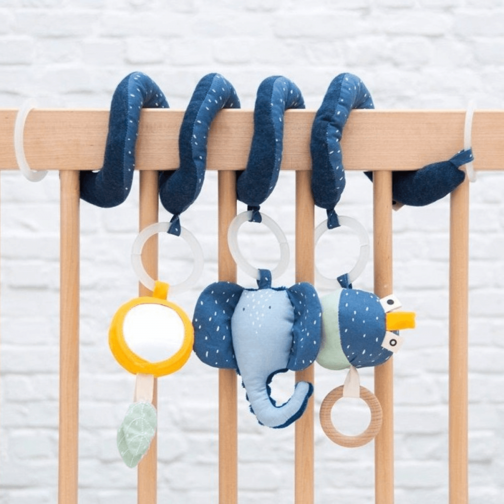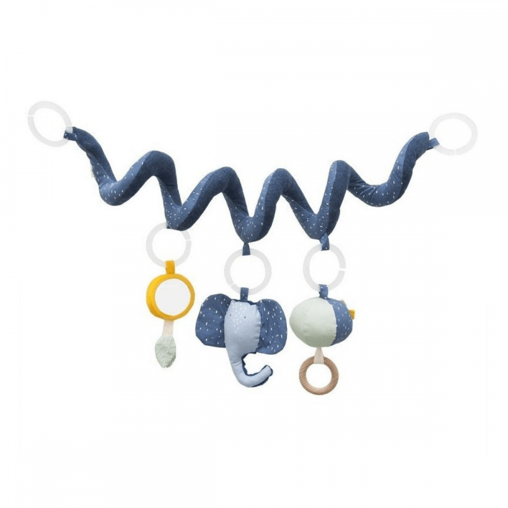 Juguete espiral de actividades de Mr. Elephant de la marca Trixie. Úsala en la cuna o para el carro o silla de paseo, o en su cuna.